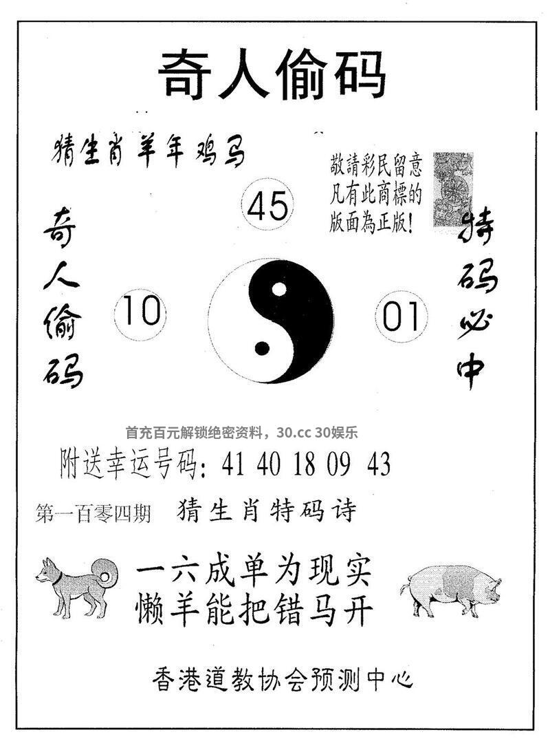 104期 | 羊兔蛇 | 马虎猴 | 开:狗32错 |