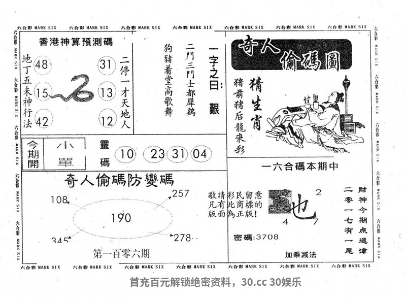 102期 | 兔鸡牛 | 龙马鼠 | 开:鼠30准 |